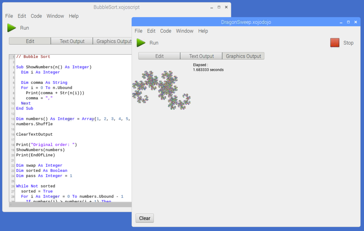 Xojo Dojo is a free and easy way to get started with programming on the Raspberry Pi. With Xojo Dojo you can use the Xojo programming language, along with a few other special commands to make simple Pi programs directly on your Raspberry Pi. These programs can use text, graphics and access the GPIO port.