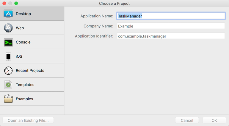 Xojo te permite crear diferentes tipos de apps (Desktop, Web, Consola y iOS). En este Tutorial vas a crear una app de escritorio de modo que has de hacer clic en Desktop.