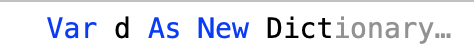 Shift Return or ⇧ Return (macOS): Completes the code block. For example, typing If True and pressing Shift Return will automatically fill in the Then and the End If and place the cursor between them. This works for other code blocks such as Select, While, Do, For, #If, etc.