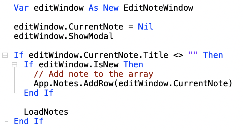 You can think of the Code Editor as a text editor that is specially designed for writing Xojo code. It has many features that make it easy for you to program in Xojo.