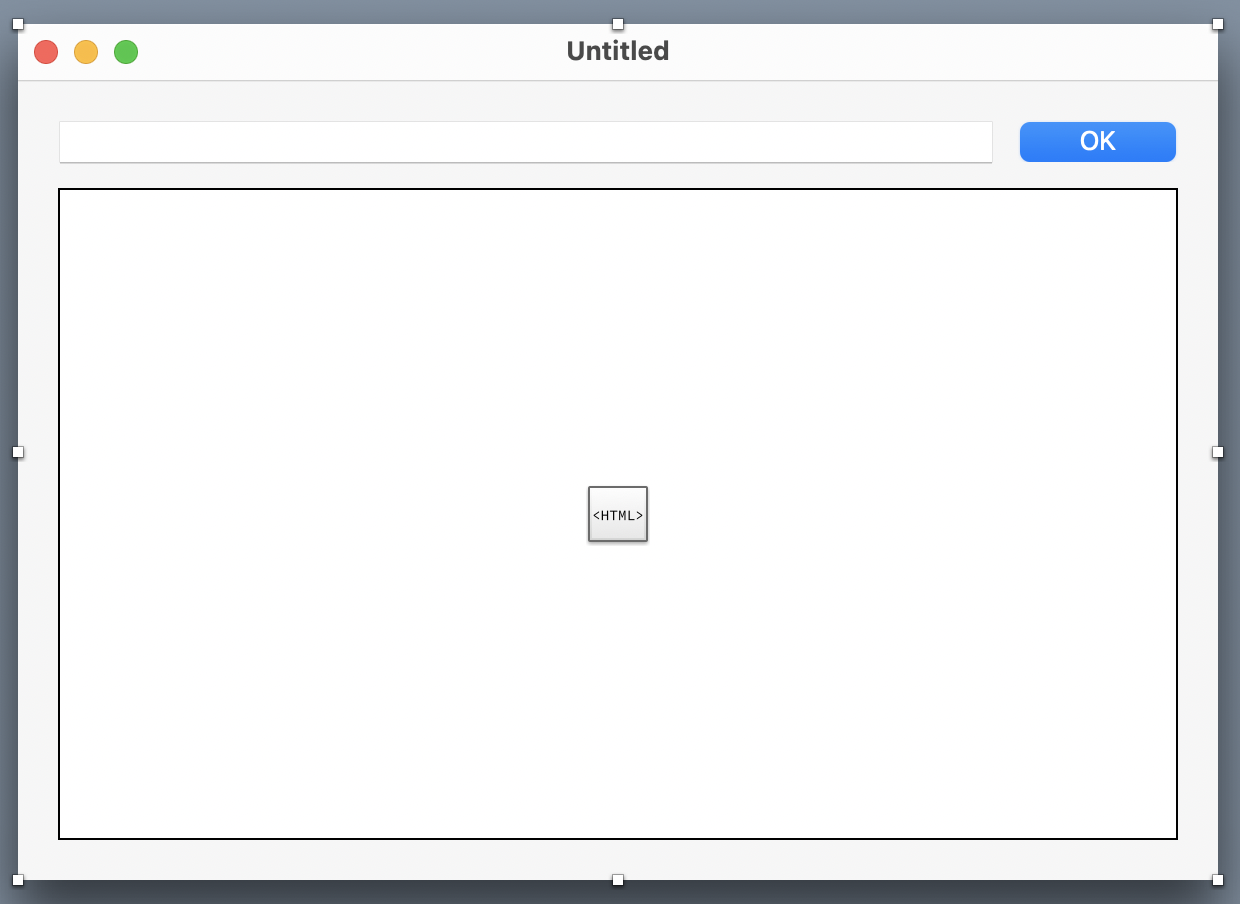 Modifica el tamaño del control HTML Viewer (utilizando los manejadores de selección de modo que rellene la mayor parte de la ventana bajo el campo de texto y el botón).