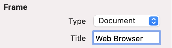 en el campo Title (ubicado en el grupo Frame), cambia name de Untitled a Web Browser.