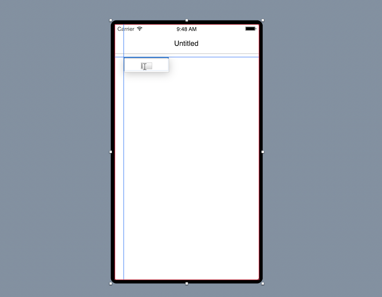 En la Librería, haz clic en el icono del Text Field y arrástralo sobre la esquina superior izquierda de la pantalla en el Editor de Diseño. A medida que te aproximes a los márgenes verás los indicadores de las guías de alineamiento que te ayudarán a posicionar el control.