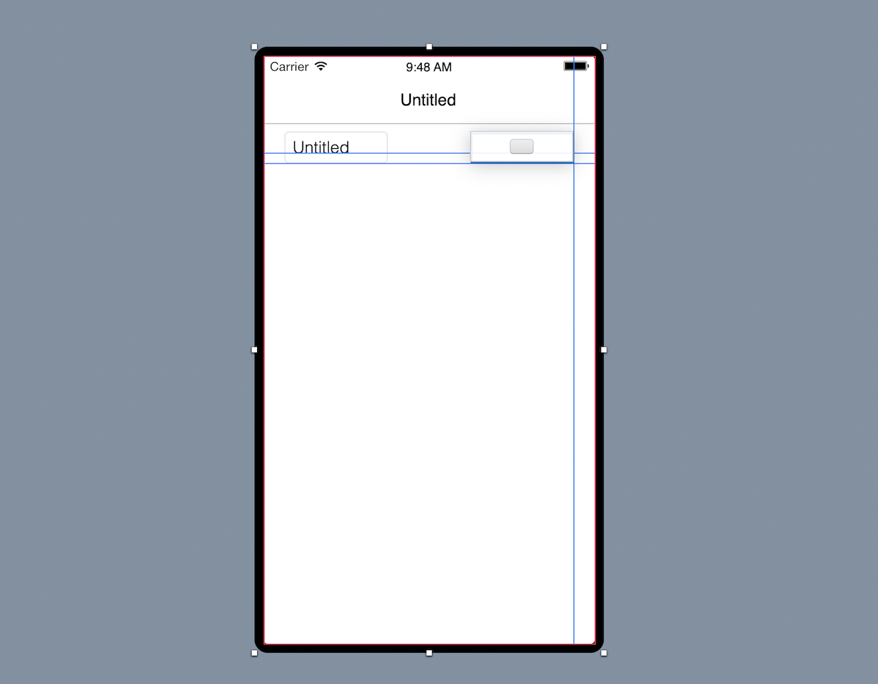 Cambia el tamaño del Text Field para aumentar su tamaño. Haz clic sobre él para que se muestren sus manejadores de selección. Haz clic en el manejador central derecho y arrástralo hacia la derecha hasta que las guías de alineación te indiquen de que estás lo suficientemente próximo al Botón.
