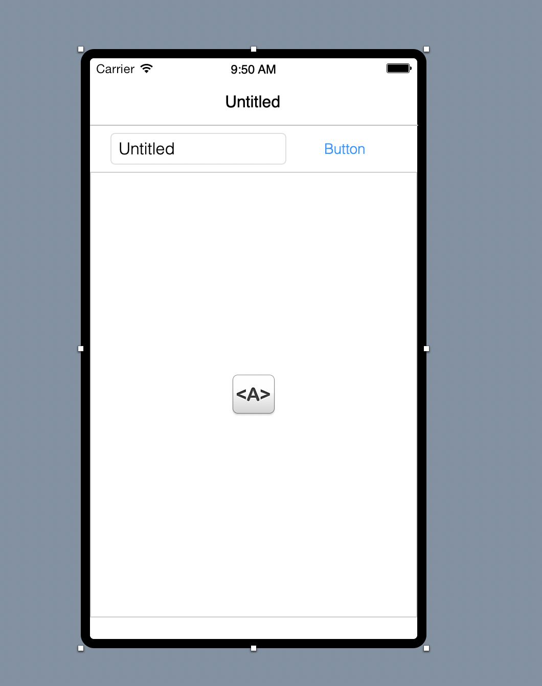 Arrastra el icono del HTML Viewer sobre el espacio vacío restante en la pantalla. Cambia el tamaño de este control (usando los manejadores de tamaño, de modo que rellene la mayor parte del espacio bajo el Text Field y el Button).