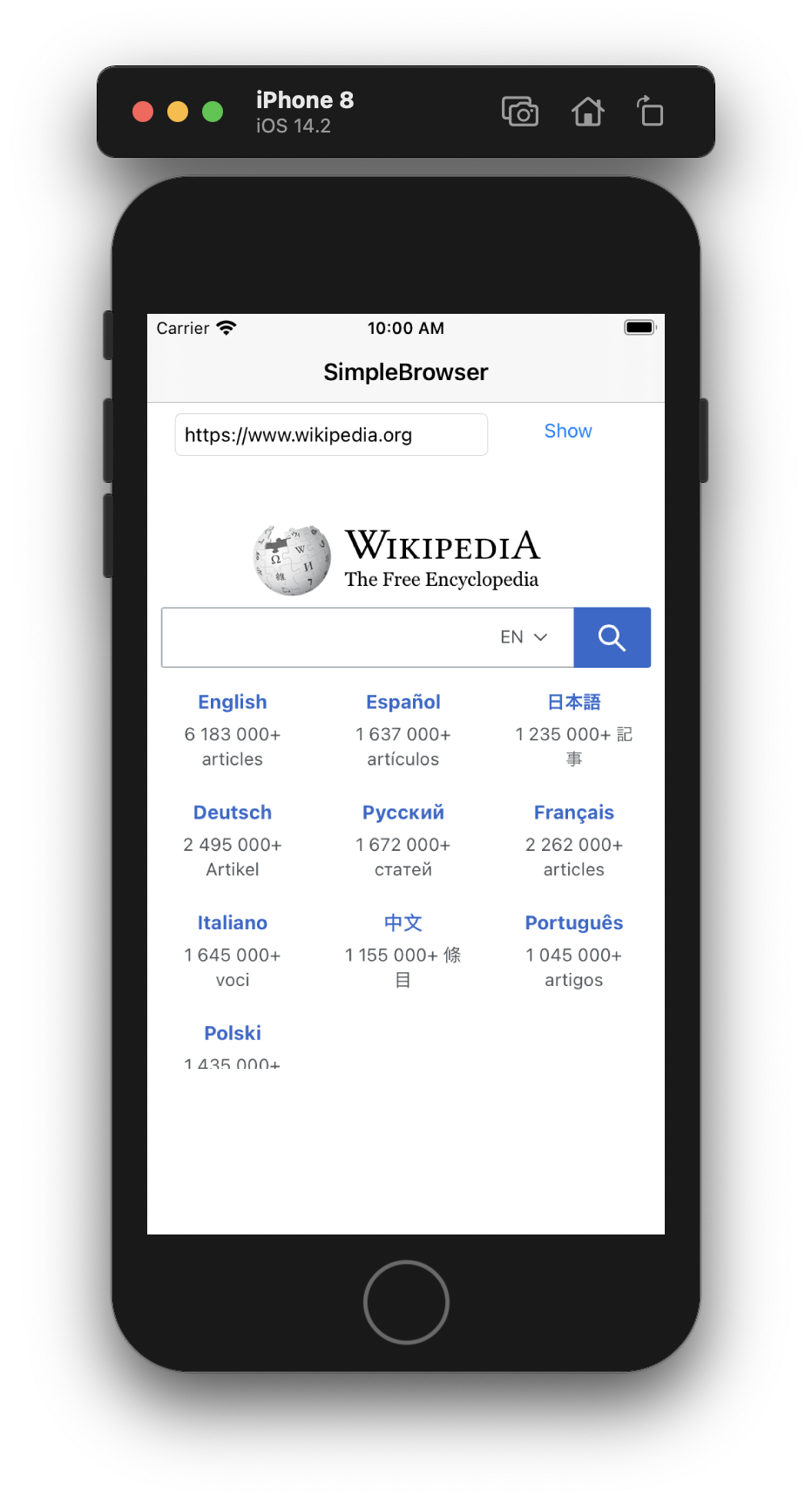 Cuando termines de experimentar con la app Simple Browser, puedes salir del Simulador iOS para volver a Xojo.