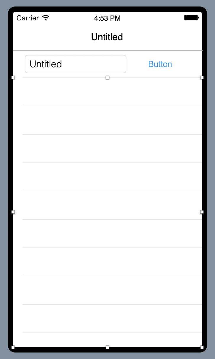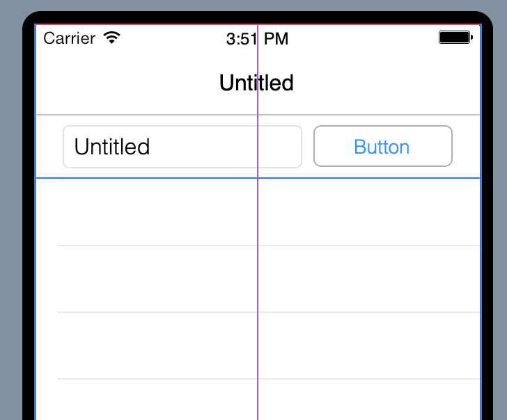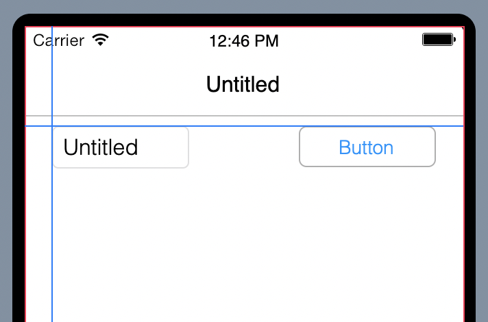 En la Librería, haz clic en TextField y arrástralo a la Pantalla de modo que quede situado en la parte superior izquierda bajo la Barra de Navegación. A medida que arrastres el control observarás que las guías de alineamiento te permitirán alinear el TextField con el Botón, tal y como se muestra en la siguiente imagen.