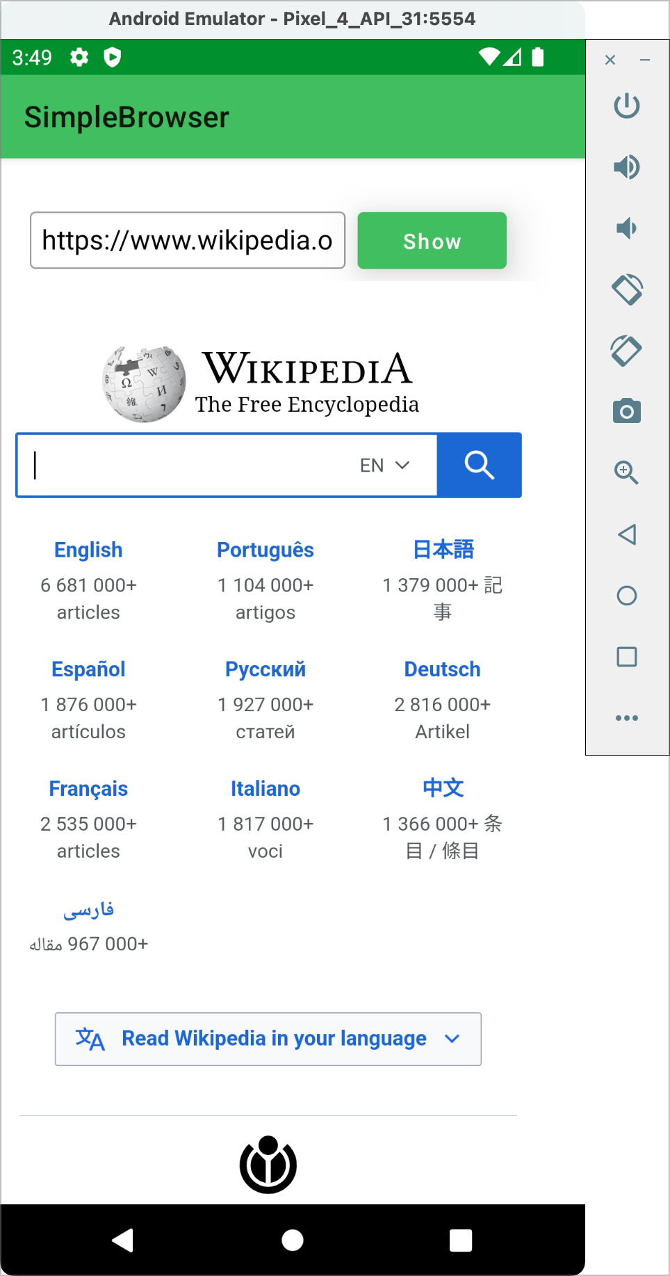 When you are finished experimenting with the Simple Browser app, you can quit the Android Simulator to return to Xojo.