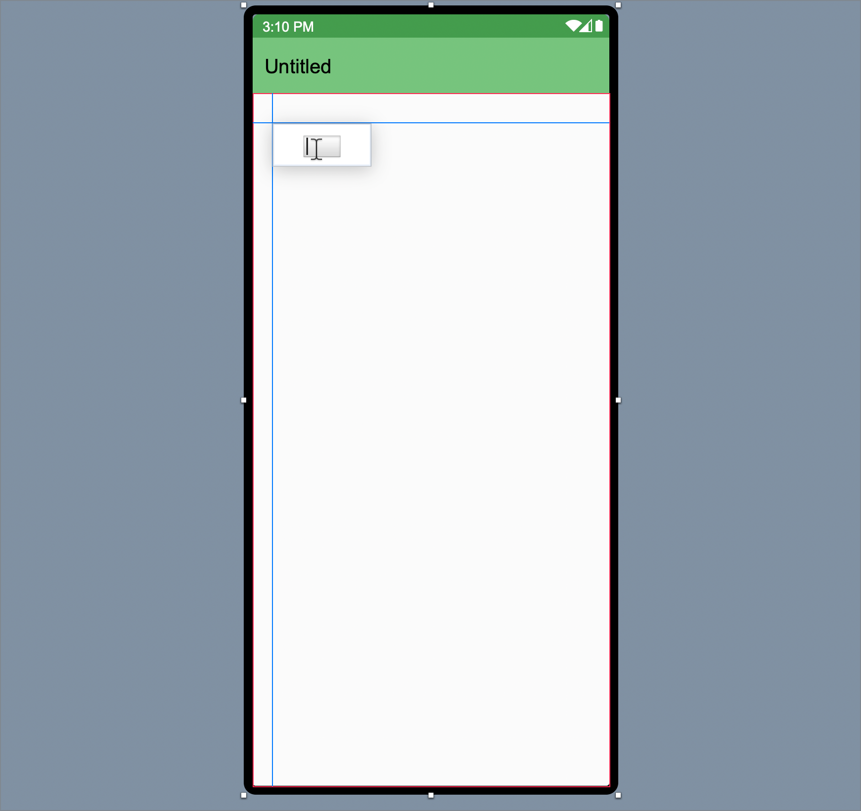 In the Library, click on the TextField icon and drag it to the top-left corner of the screen in the Layout Editor. As you get close to the edges of the screen, you will see alignment indicators that help you position the control.
