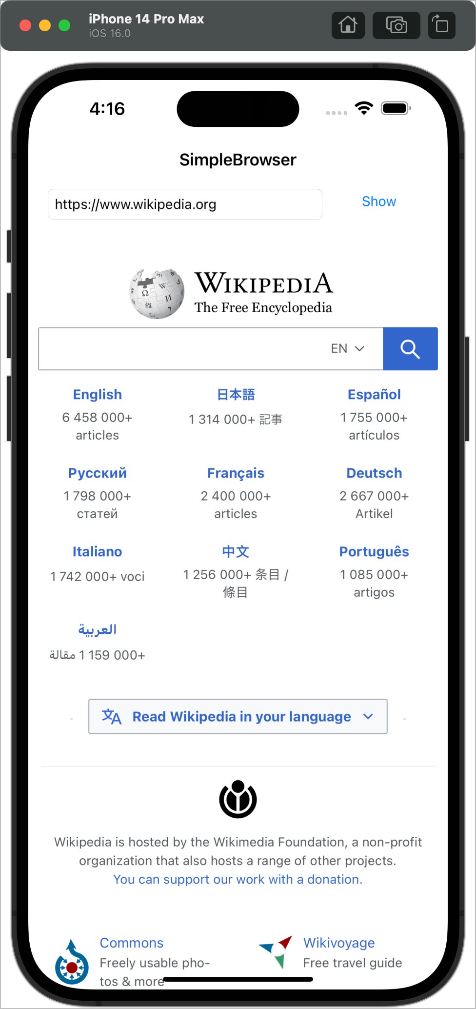 When you are finished experimenting with the Simple Browser app, you can quit the iOS Simulator to return to Xojo.