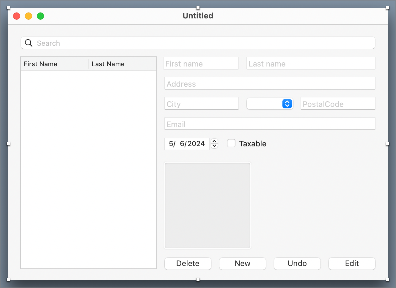 In this tutorial you created a single window app. The SearchResults Listbox is on the same window as the various entry controls. DBKit also supports multi-window user interfaces where the SearchResults ListBox and entry controls are on separate windows. You can see this in the DBKit-Desktop example project. Run it and click the Separate button. What appears is a search window. After doing a search, double-click on a row to open the entry window.
