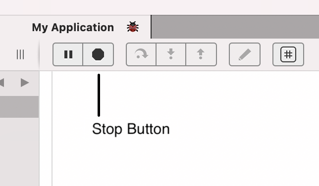 To stop the app, click the Stop button in the Debugger (which we will talk about more later).