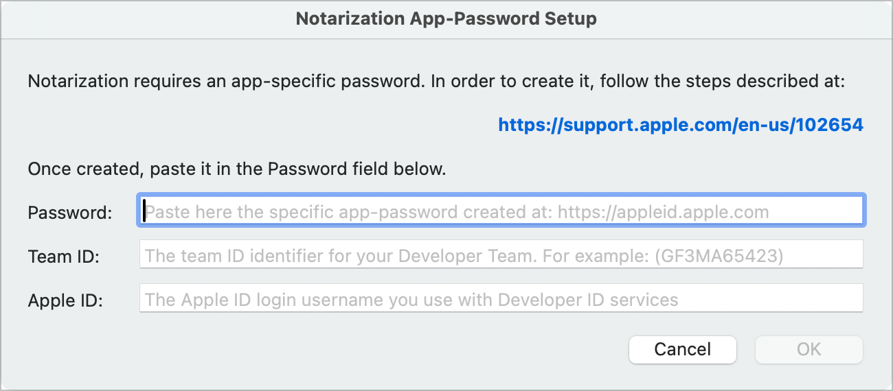 Click the Setup button. The Notarize App-Password dialog box appears.